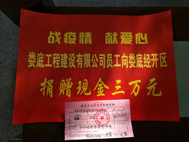 戰(zhàn)疫情,獻(xiàn)愛心!婁底工程建設(shè)有限公司員工積極響應(yīng)公司號(hào)召,踴躍奉獻(xiàn)愛心。2月18日,公司工會(huì)主席羅堅(jiān)代表公司將3萬元的員工捐款交給了婁底經(jīng)濟(jì)技術(shù)開發(fā)區(qū)社會(huì)事務(wù)局,以實(shí)際行動(dòng)支持疫情防控工作。