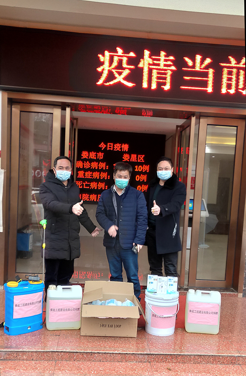守望相助,共戰(zhàn)疫情。公司領(lǐng)導(dǎo)得知婁星區(qū)樂坪街道辦事處火車站居委會防疫物資短缺,決定從公司有限的防疫物資中擠出一批支援社區(qū)疫情防控工作。2月21日,公司總經(jīng)理胡勁代表婁底工程建設(shè)有限公司將1500個一次性口罩、三支紅外線體溫檢測儀及消毒水、消毒粉等捐贈給火車站社區(qū),以實際行動支援社區(qū)的防控工作。