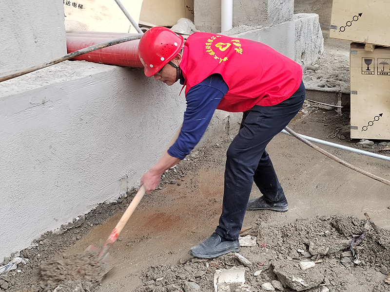市中心醫(yī)院臨時黨支部書記姚春旭帶頭清掃淤泥